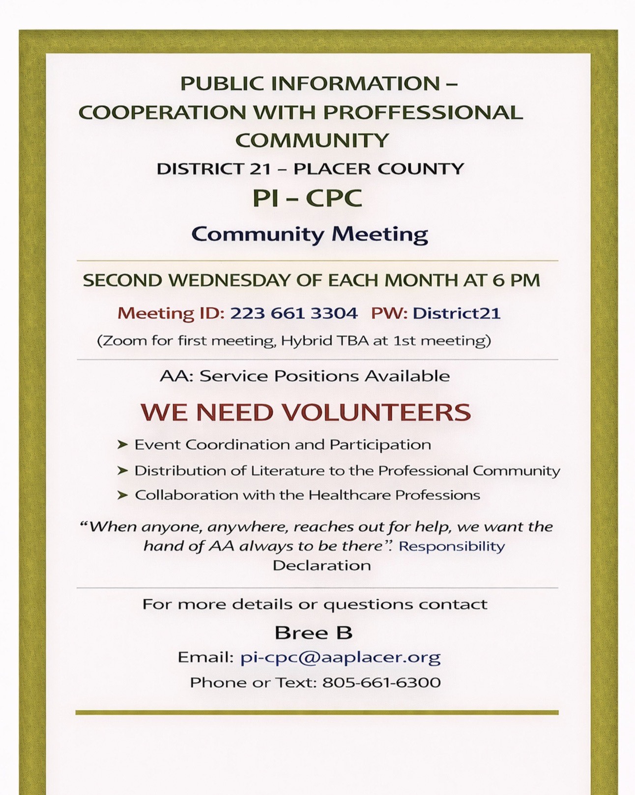 Our primary purpose is to stay sober and help other alcoholics achieve sobriety.